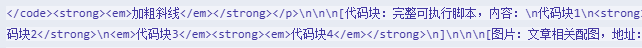 <preclass=\“wp-block-code\”><code>代码块1\n<strong>代码块2</strong>\n<em>代码块3</em>\n<strong><em>代码块4</em></strong></code></pre>