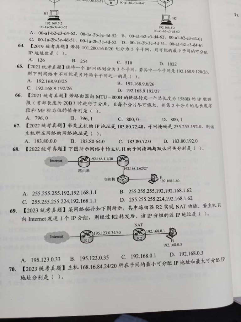 所以 H1 无法与 H3 正常 IP 通信,C 正确。