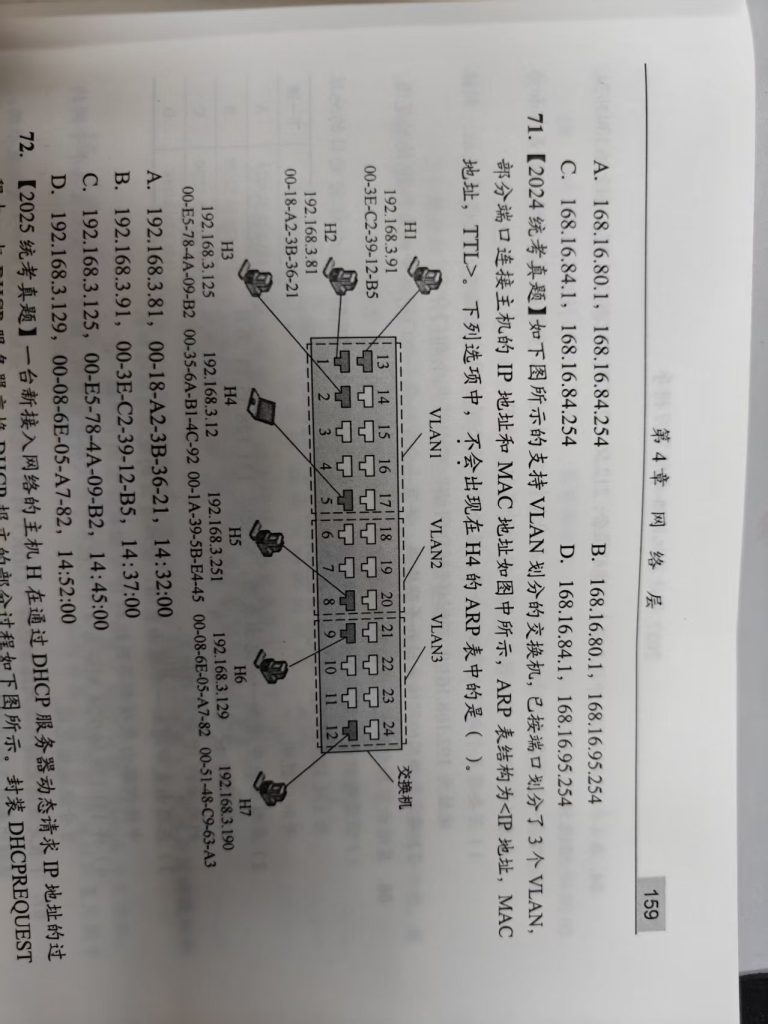 ARP 请求是二层广播,但广播不能跨 VLAN 传播。所以 H4 的 ARP 表里,只可能出现同一 VLAN 内主机的 IP-MAC 映射,不可能出现其他 VLAN 主机的映射。