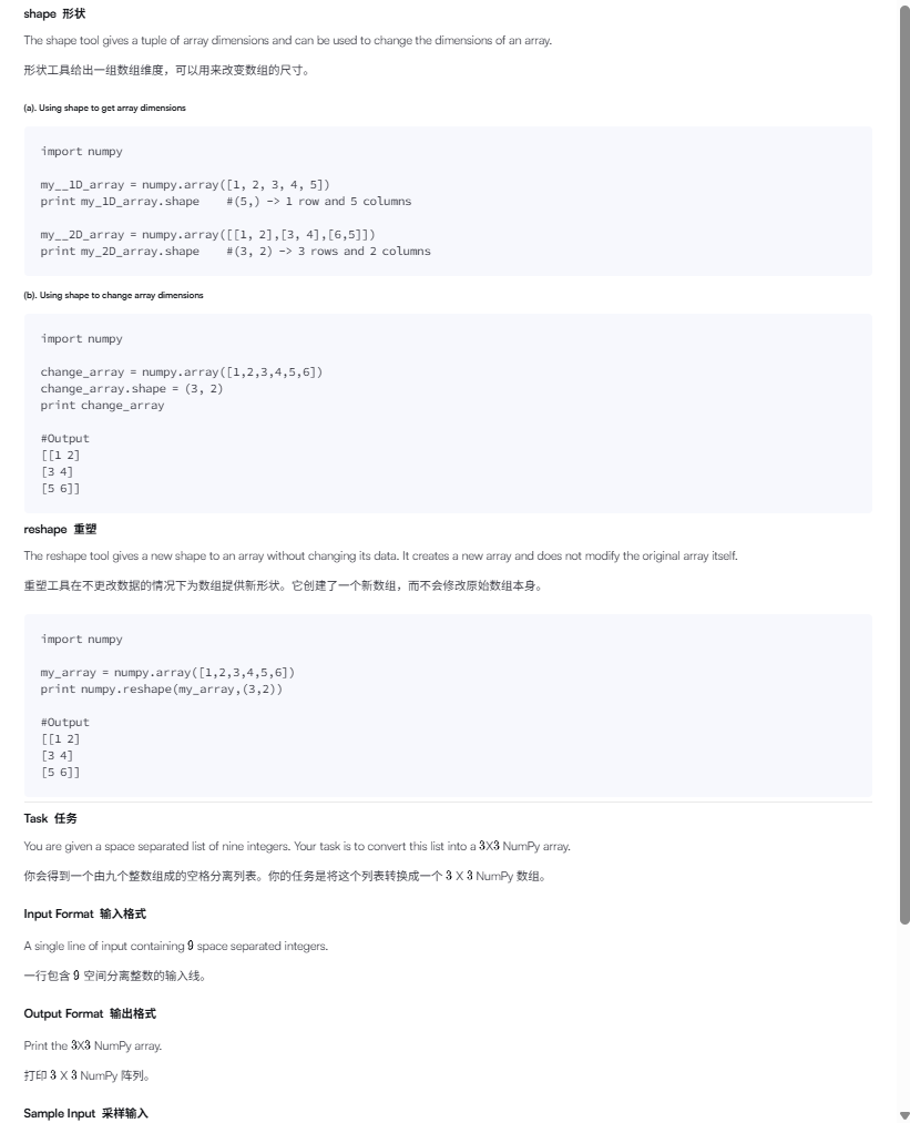 numpy.reshape(my_array, (3, 3)) 里面的两个参数分别是什么