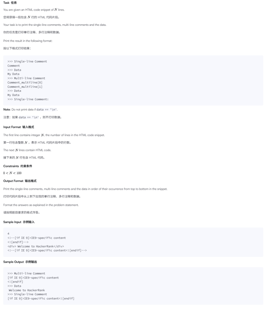 题目会先给一个整数 N,表示后面有多少行 HTML。