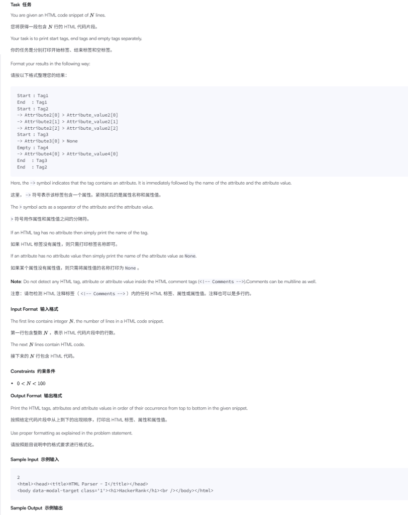 N,再读接下来的N行 HTML。 - 字符串整体拼接:把多行 HTML 作为一个整体交给解析器。