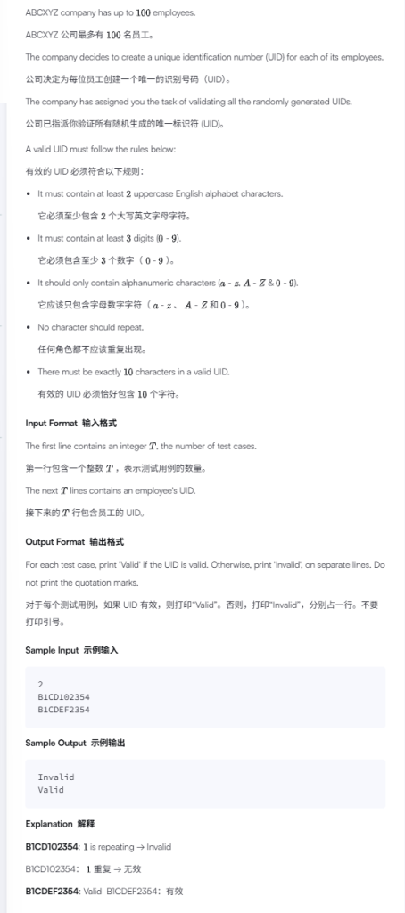 注意:这些条件是“同时满足”。只要有一个条件不满足,就输出 Invalid。