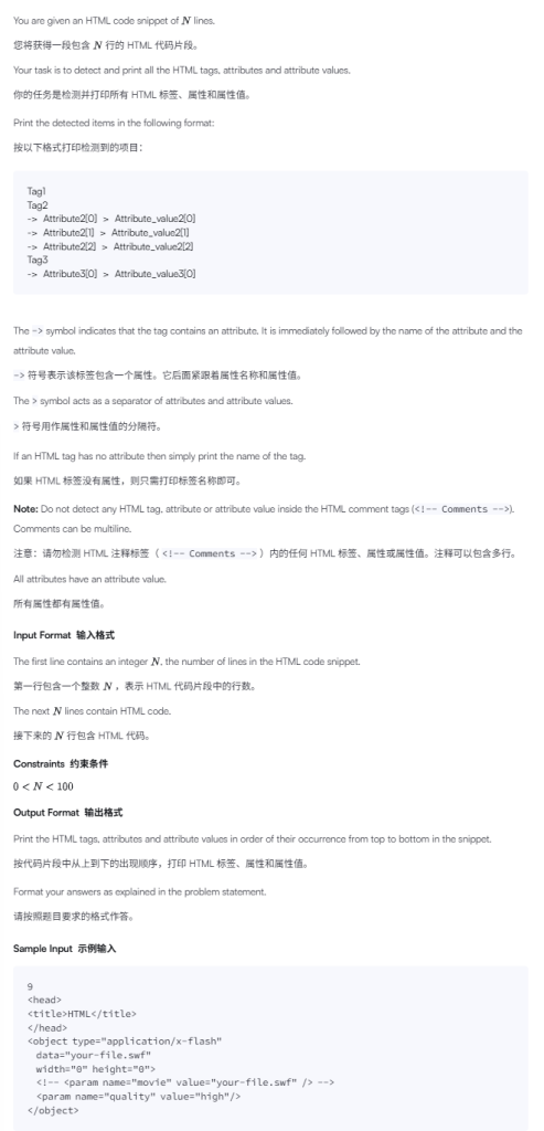 题目第一行是整数 N,表示后面有多少行 HTML。