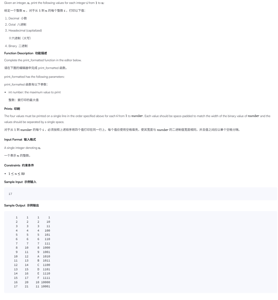 这道题不是考复杂算法,核心是:把每个数字转换成不同进制,然后按统一宽度对齐输出。