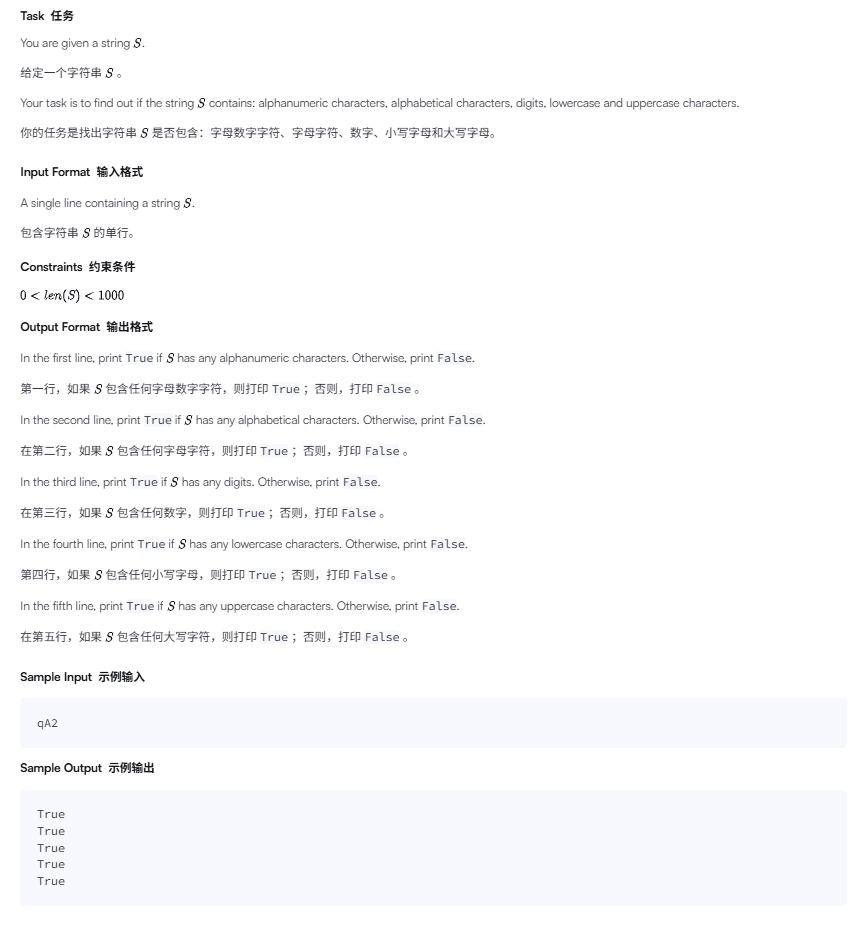 比如这道题,题目本身就是 HackerRank 的字符串验证题,它的目的就是让你熟悉这些字符串判断方法: