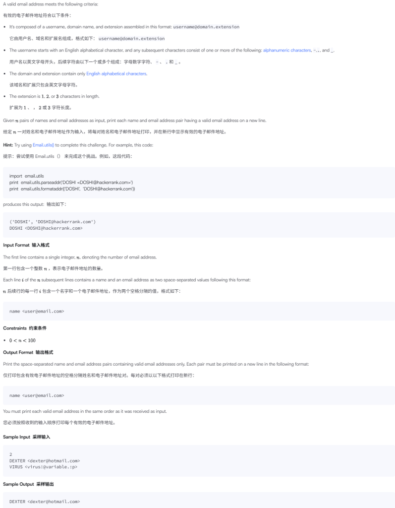 题目第一行是整数 n,表示后面有多少组姓名和邮箱。