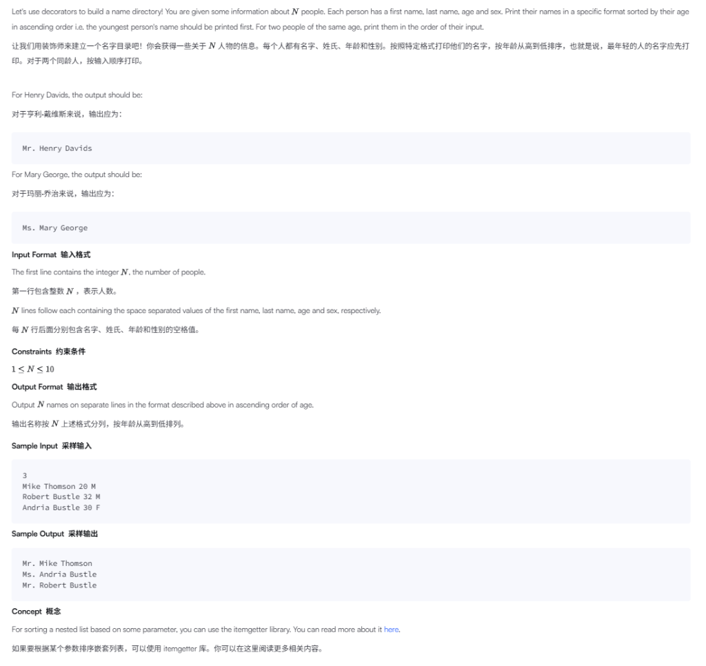 题目要求你用装饰器把“排序逻辑”包在外层,把“单个人名格式化逻辑”留给原函数。