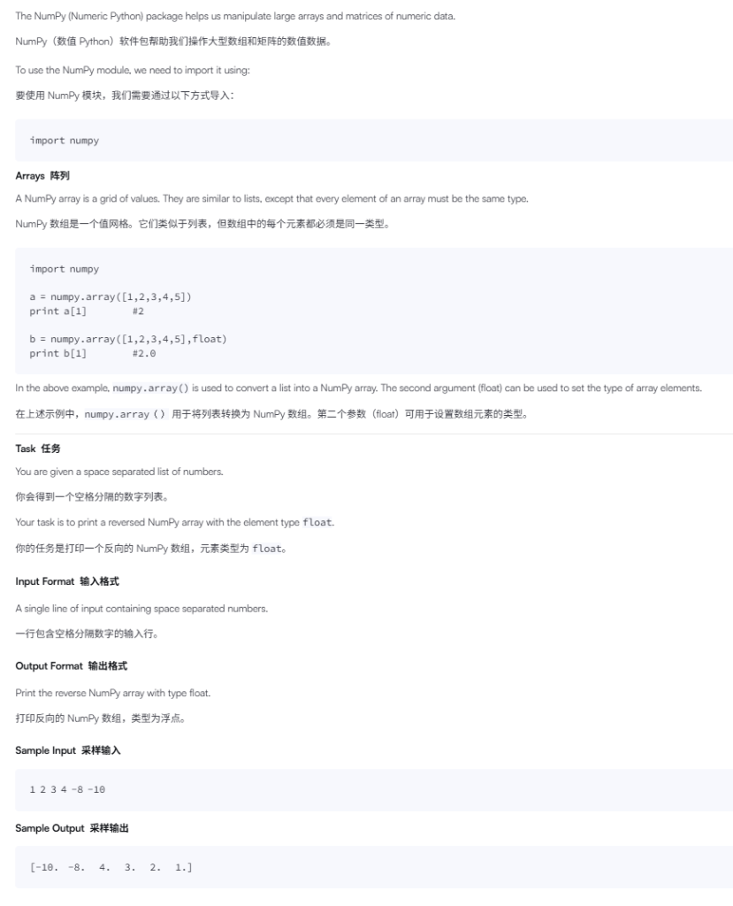 提示:这次不需要使用 [::-1],只需要完成“输入、切分、转 NumPy 数组、指定 float、打印”这几步。